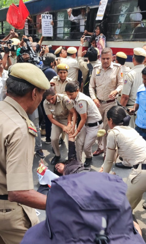 സമരത്തിന് പിന്തുണയുമായെത്തിയ കര്ഷകരെ ഡല്ഹി അതിര്ത്തികളിലും പോലീസ് തടഞ്ഞിട്ടുണ്ട്. പഞ്ചാബില്നിന്നുള്ള കര്ഷക സംഘടനയായ ‘പഞ്ചാബ് കിസാന് മസ്ദൂര് സംഘര്ഷ് കമ്മിറ്റി’ പ്രവര്ത്തകരെ അംബാല അതിര്ത്തിയില് വച്ച് പോലീസ് തടഞ്ഞു. നിരവധി കര്ഷക നേതാക്കളും പോലീസ് കസ്റ്റഡിയിലാണ്. പ്രായപൂര്ത്തിയാകാത്ത പെണ്കുട്ടിയടക്കം ഏഴ് ഗുസ്തി താരങ്ങളെ ലൈംഗികമായി പീഡിപ്പിച്ച ബിജെപി എംപിയും ഗുസ്തി ഫെഡറേഷന് പ്രസിഡന്റുമായ ബ്രിജ് ഭൂഷണെ അറസ്റ്റുചെയ്യണം എന്നാവശ്യപ്പെട്ടാണ് പ്രക്ഷോഭം.